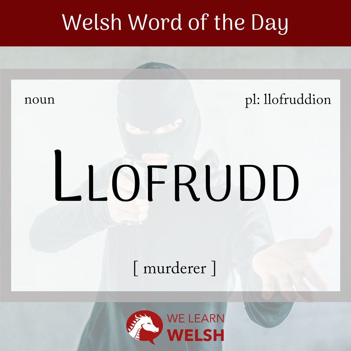 Our Welsh word of the day today may not be particularly pleasant, but it’s useful to know as it’s often found in the newyddion (news), in llyfrau (books), and on teledu (television). Llofrudd means murderer …