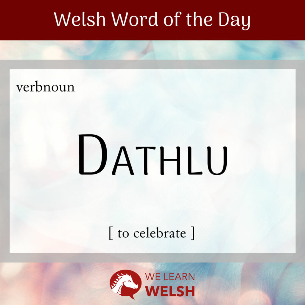 Most of the words Pughe invented are no longer used, but there are a few that are, especially those that were based on genuine roots that already existed in the language. One of these is dathlu. It’s based on the archaic adjective dathl, meaning famous or celebrated, and originally meant to celebrate as in to extol.