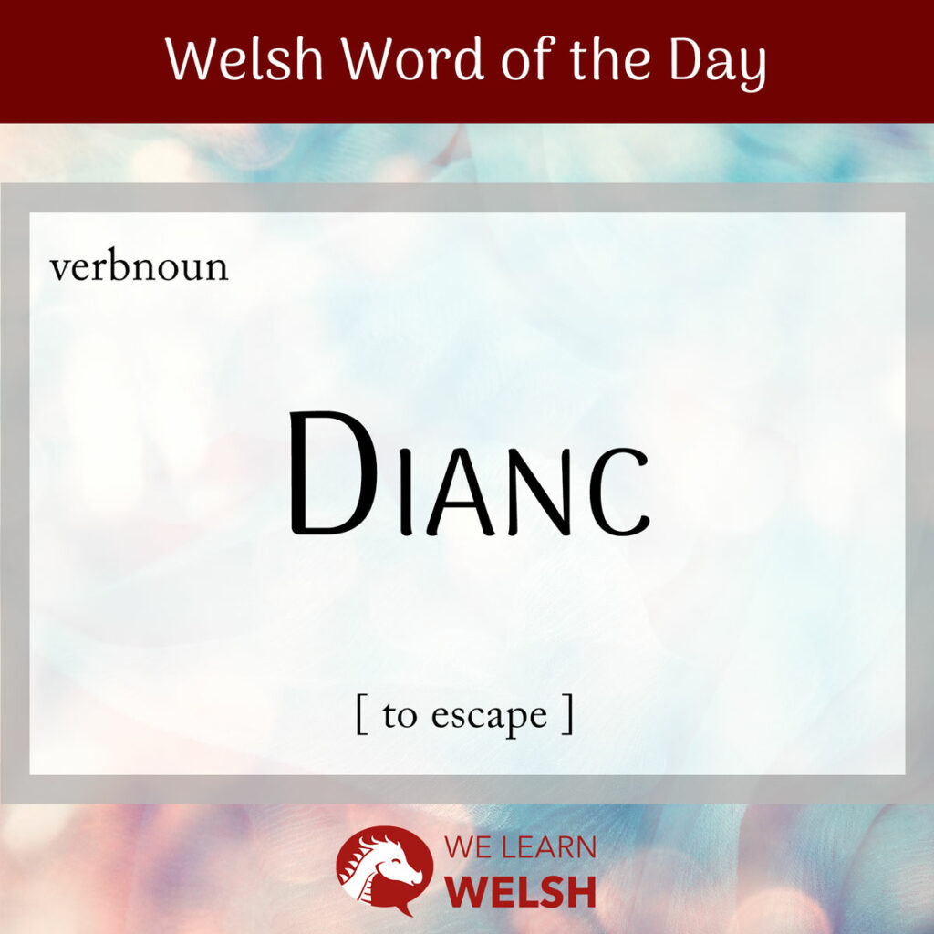Our Welsh word of the day today is a verb – dianc. This is the standard way of saying to escape or escaping in Welsh, though ffoi (to flee) is a common alternative.