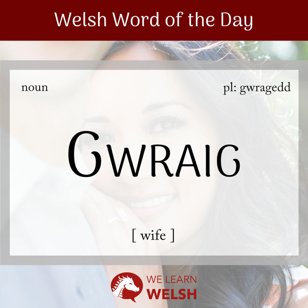 Perhaps the first Welsh word I ever taught fy ngwraig (my wife) was just that – gwraig (wife or woman), the subject of this article. She had a lot of fun trying to pronounce it; it can be difficult condensing the first part, gwr, into one syllable. Here’s my rendition below, along with the plural, gwragedd (wives).