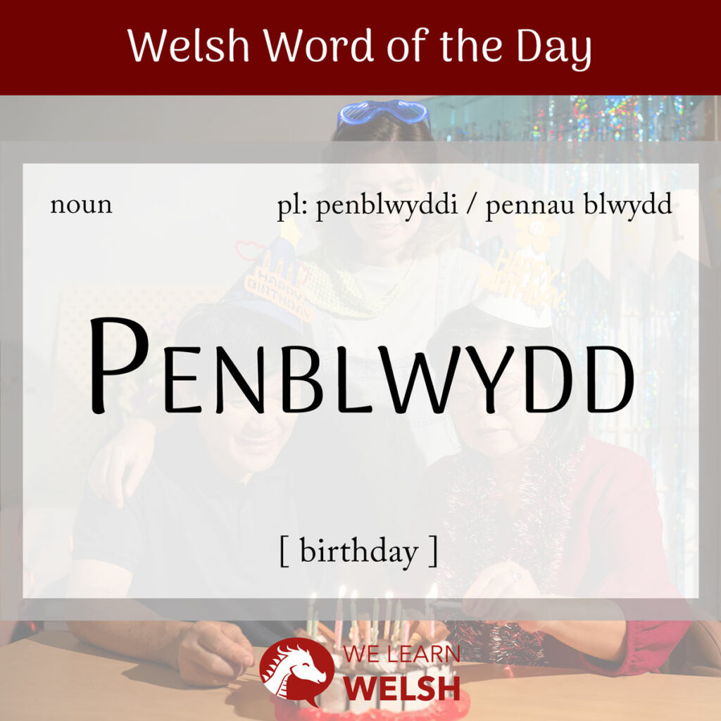 Today’s isn’t one you’ll use every day of the year – but when you do need to use it, you’ll be very glad to know it! I’m talking of course about penblwydd (birthday or anniversary), the plural of which is penblwyddi.