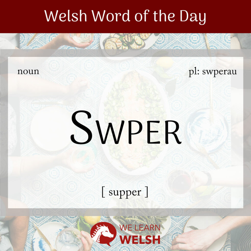 But this isn’t the only way to talk about having supper with someone – it’s likely easier and just as acceptable to simply say bwyta gyda rhywun (eating with someone), and there is actually a verbal form of swper itself, swperu (to sup / to have supper), although this sounds quite formal.