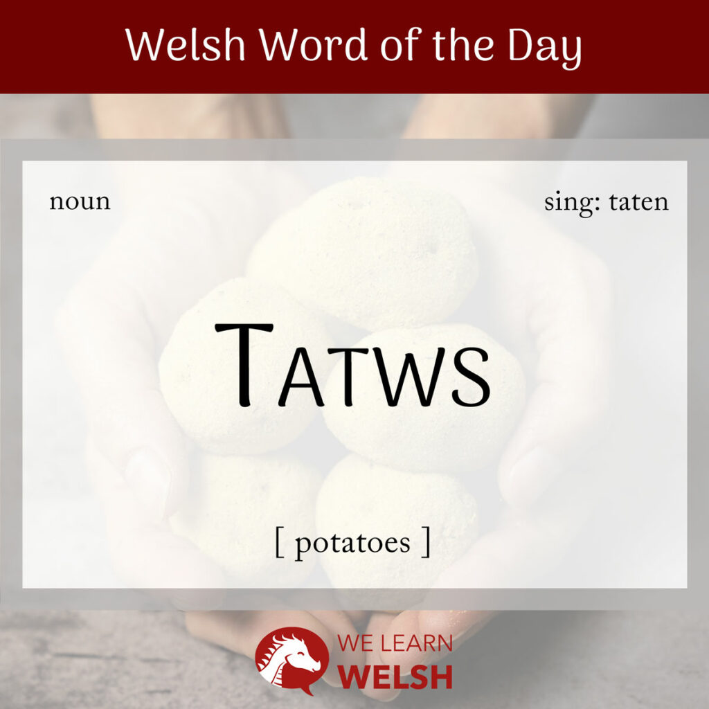 There are alternative versions of this word. Tato is another possible plural, as is tatw. Some North Walians use tysen or tatan for the singular. And cloronen, with plural cloron, is used in literary contexts – most people colloquially are more likely to use this to mean tuber though. Tatws, overall, is the most common word you’ll hear and learn.