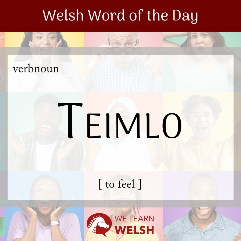 Teimlo is also the ancestor of the important word teimlad (a feeling, emotion or sensation). This is a masculine noun with the plural teimladau (feelings, emotions or sensations). Ymdeimlad is a less common alternative which utilises the reflexive prefix ym.