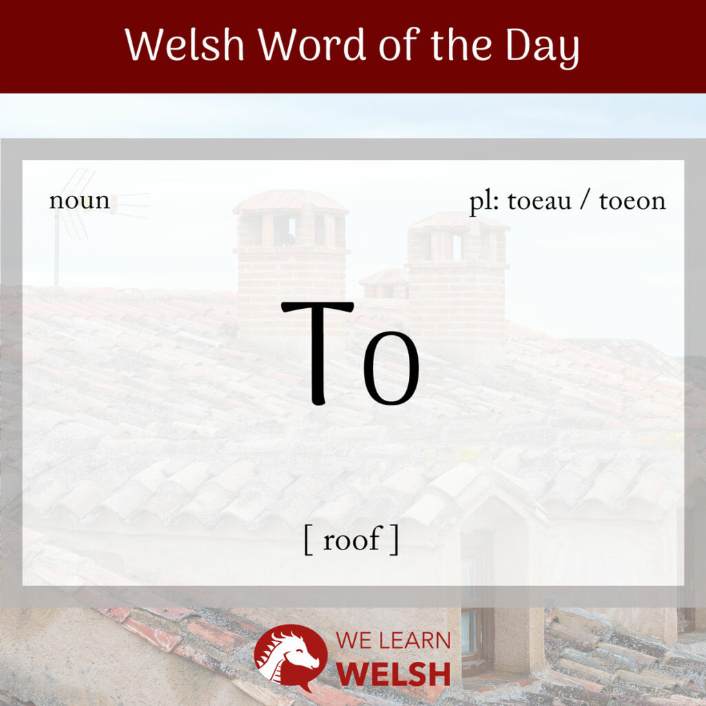 The Welsh word for a roof is the very simple to, a masculine noun with the plural forms toeau and toeon (roofs).